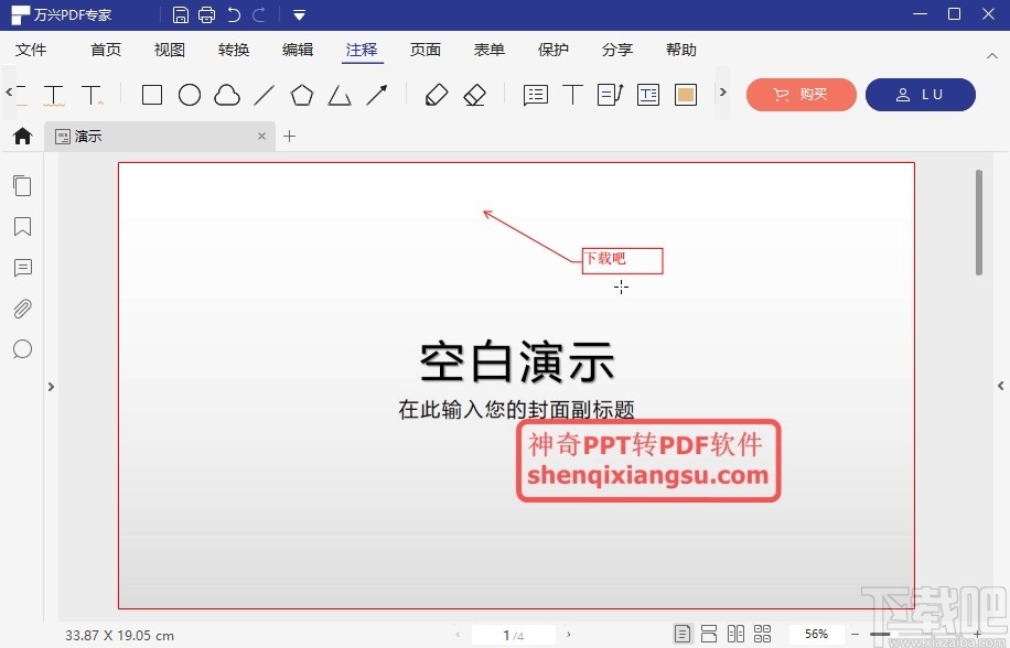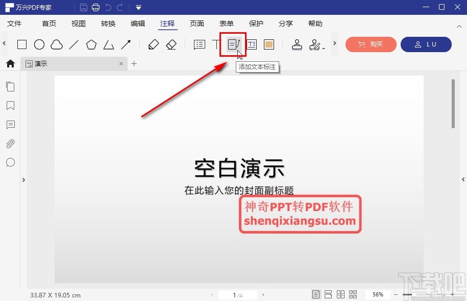 2.进入到文件界面之后,下一步我们在界面上方找到注释这个选项,点击注释之后切换到注释功能界面当中。