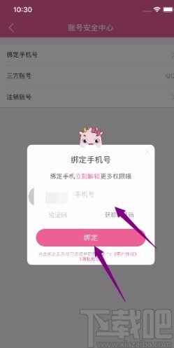 6.最后界面上就会弹出一个绑定手机号窗口,我们在窗口中输入手机号,并获取验证码,将验证码输入到“验证码”文本框后,再点击“确定”按钮,就成功绑定手机号了。