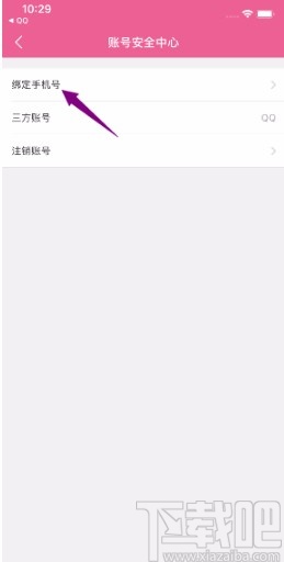 5.然后在账号安全中心页面中,我们在页面上找到“绑定手机号”选项,点击该选项再进行下一步操作。