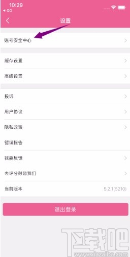 4.进入到设置页面后,我们在页面上找到“账号安全中心”选项,点击该选项进入到账号安全中心页面。