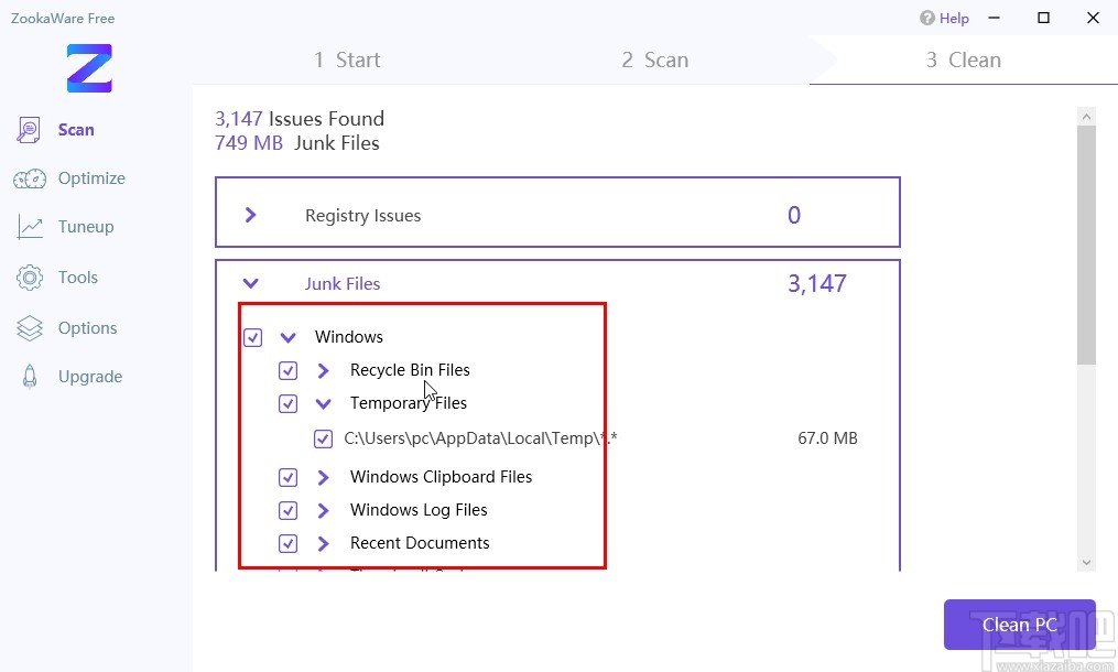 以上就是小编今天跟大家分享的使用ZookaWare这款软件的时候清理垃圾文件的具体操作方法了,有需要的朋友可以试一试这个方法,希望这篇方法教程能帮到大家。