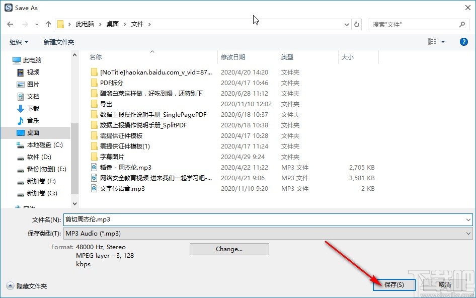 7.点击另存为打开保存图片的界面之后,我们选择好保存的路径和人,然后点击右下角的保存按钮即可将剪切的片段保存下来。