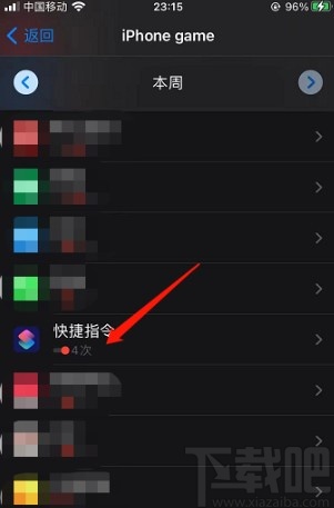 5.展开之后我们在其中就可以找到快捷指令这个选项了,然后点击这个选项准备对快捷指令进行设置,如下图中所示。