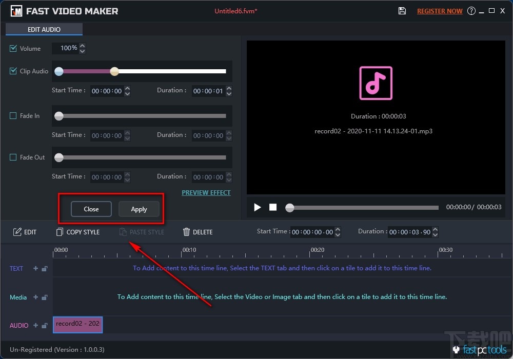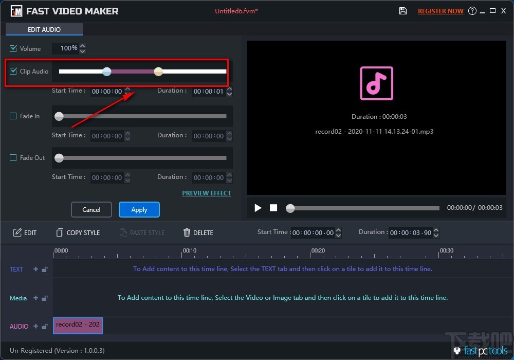 Fast Video Maker是一款非常出色的多媒体制作软件,该软件功能十分丰富,不仅可以对视频进行剪切、裁剪画面等处理,还可以对图片、音频进行编辑操作,使用起来十分便捷。我们在编辑处理音频文件的时候,很多情况下都需要剪切音频。比如在给视频配乐的时候,就需要先对音频文件进行剪切处理,使它的时间长度与视频的时间长度保持一致,这样才能更好的适合视频。这款软件可以满足我们剪切音频的需要,那么接下来小编就给大家详细介绍一下Fast Video Maker剪切音频的具体操作方法,有需要的朋友可以看一看。