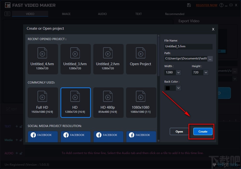 1.首先打开软件,我们在界面右下方找到蓝色的“Create”按钮,点击该按钮再进行下一步操作。