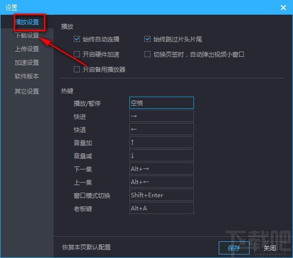 3.然后界面上就会出现一个设置窗口,我们在窗口左上角可以找到“播放设置”选项,点击该选项即可。