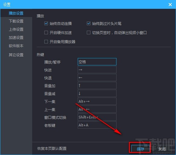 5.完成以上所有步骤后,我们在窗口底部找到“保存”按钮,点击该按钮就可以成功设置好快捷键了。