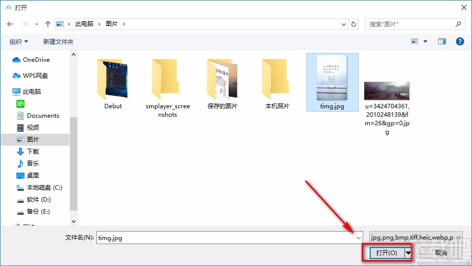3.然后在文件添加页面中,我们选中需要转换格式的图片文件,再点击页面右下角的“打开”按钮即可。