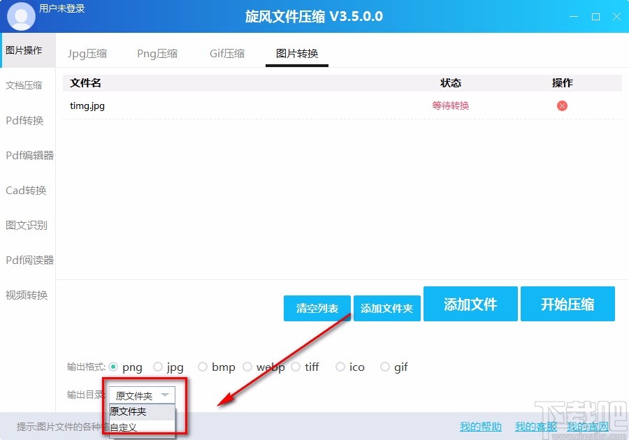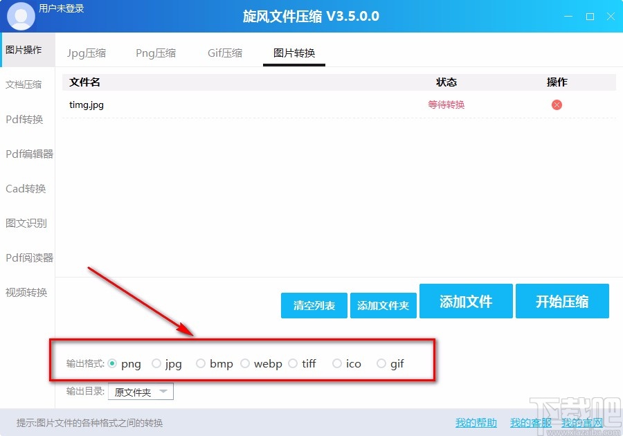 4.将图片文件添加到软件后,我们在界面下方找到“输出格式”选项,该选项后面有很多图片格式,我们根据自己的需要进行选择即可。