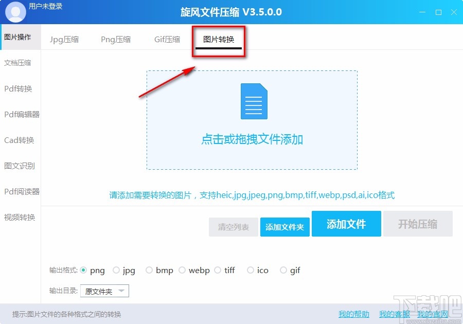 旋风文件压缩是一款专业的文件压缩软件,该软件界面清爽简单,可以将多种格式的图片进行压缩,同时还可以将多种主流格式的图片进行相互转换,功能十分强大,使用起来也很便捷。在日常生活中,我们常常需要转换图片格式。比如在一些社交平台上上传图片时,可能会受到图片格式限制,如果图片格式不满足平台的需要,就不能够成功地将图片上传到平台上,所以我们需要掌握转换图片格式的方法。那么接下来小编就给大家详细介绍一下旋风文件压缩转换图片格式的具体操作方法,有需要的朋友可以看一看。