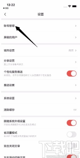 4.接下来在设置页面中,我们在页面上方找到“账号管理”选项,点击该选项进入到账号管理页面。