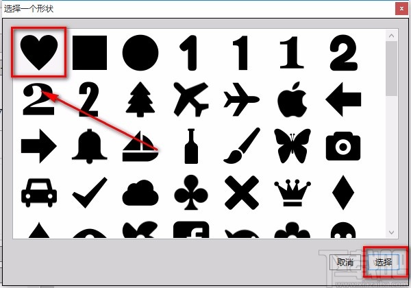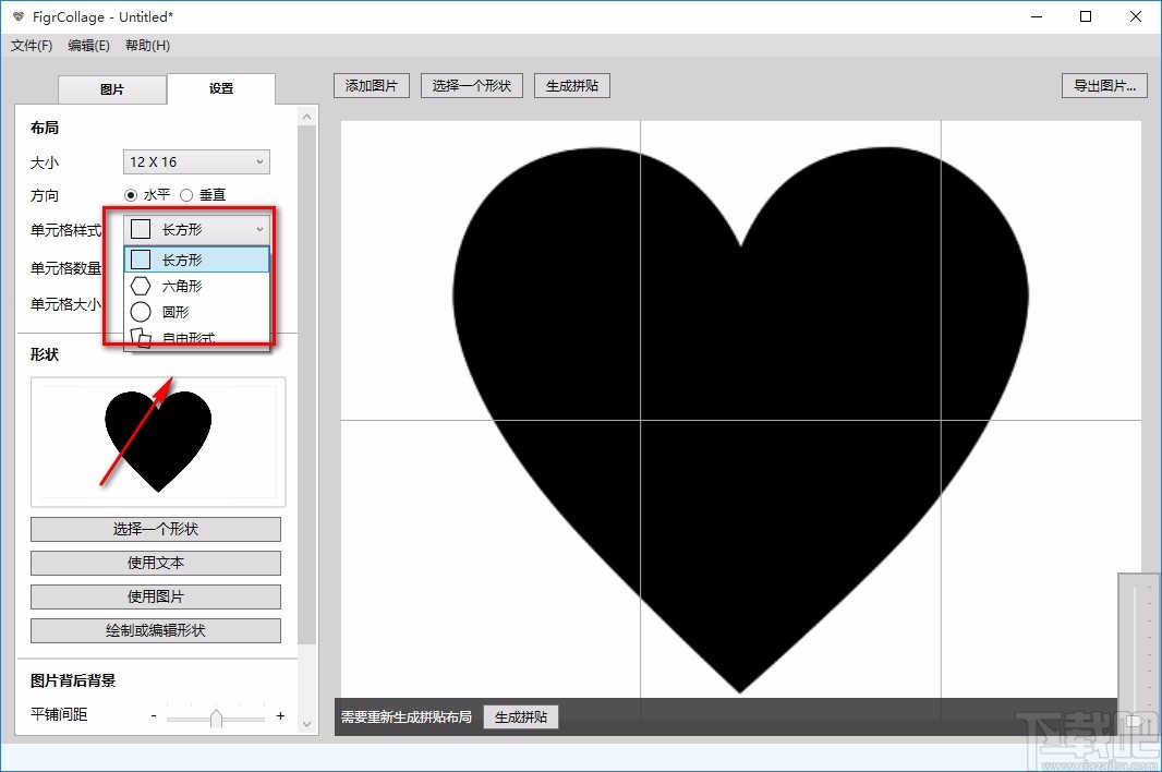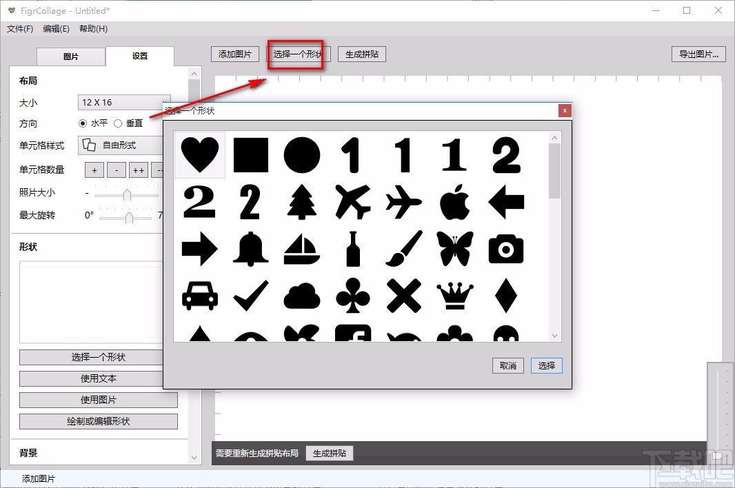 4.我们在窗口中选择好图片拼接的形状后,再点击窗口右下角的“选择”按钮即可。
