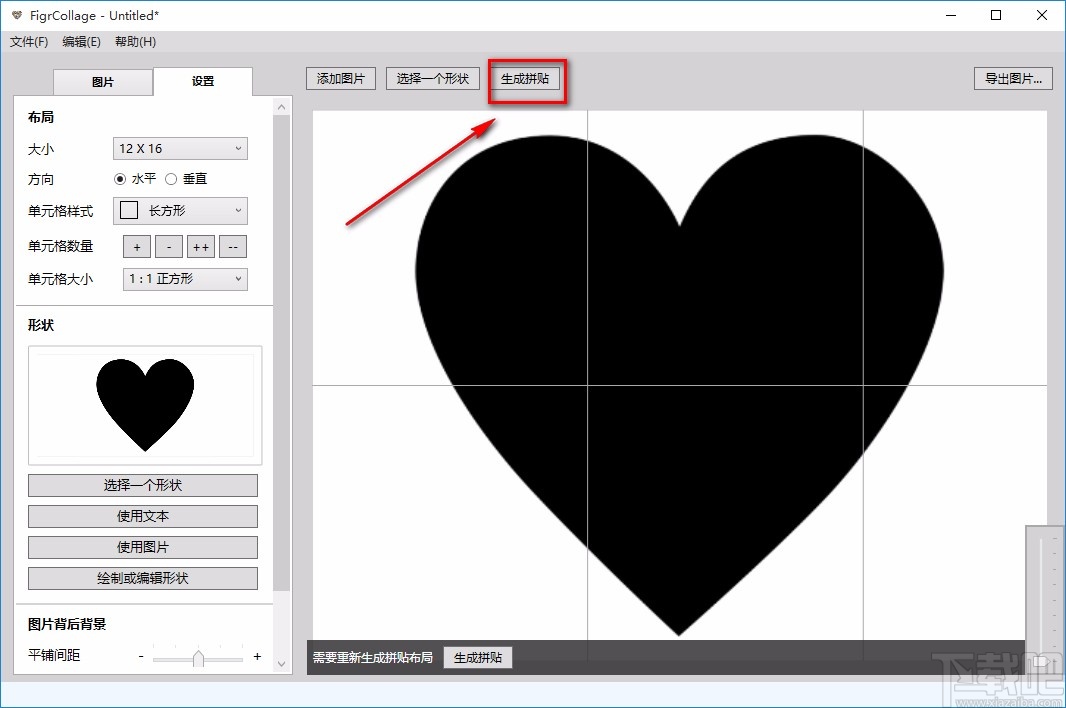 8.接下来我们在界面上方找到“生成拼贴”按钮,点击该按钮就可以拼接图片了。