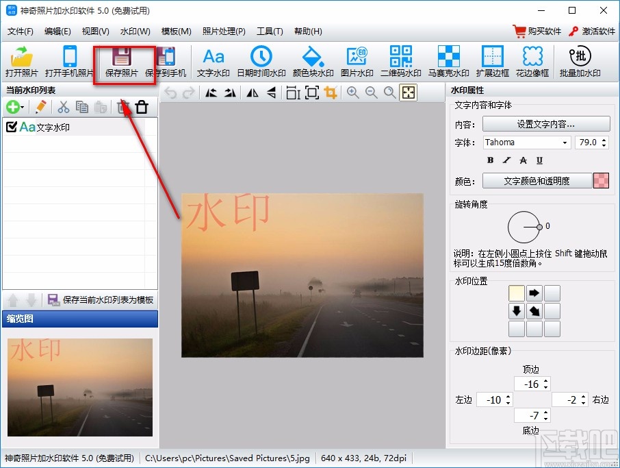9.完成以上所有步骤后,我们在界面左上方找到“保存照片”按钮,点击该按钮就可以将添加水印后的照片保存在电脑中了。