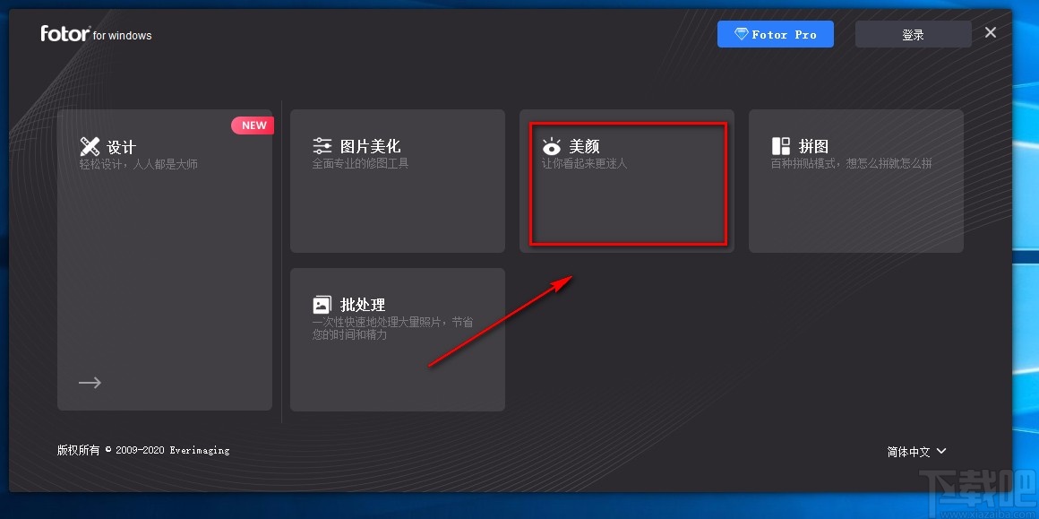 1.首先打开软件,我们在界面上可以找到“美颜”选项,点击该选项就能够进入到美颜页面。