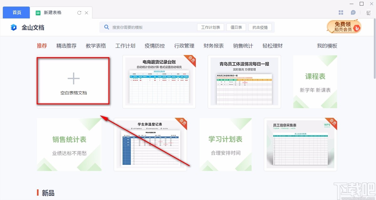 4.然后就会进入到新建表格页面,在页面上我们可以看到很多表格模板,可以直接点击这些模板新建表格;也可以点击“空白表格文档”选项来新建表格。