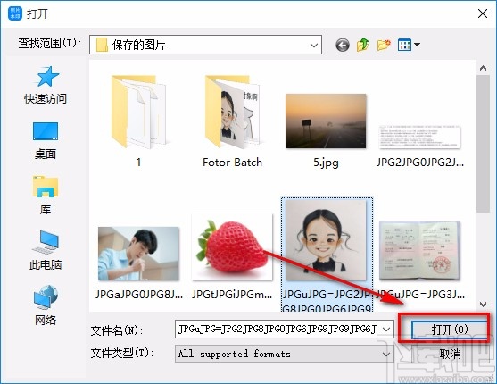 2.接着在文件添加页面中,我们选中需要裁剪的图片文件后,再点击页面右下角的“打开”按钮即可。