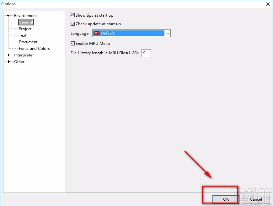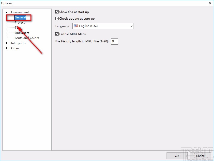 3.然后界面上就会出现一个Options窗口,我们在窗口左上方找到“General”选项,点击该选项再进行下一步操作。