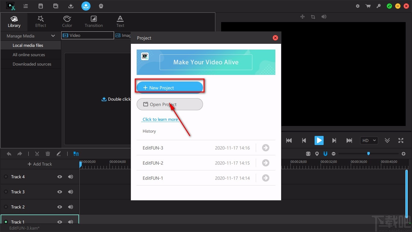 1.首先打开软件,我们在界面上找到“New Project”选项,点击该选项,再进行下一步操作。