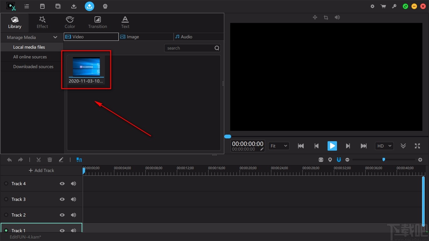 7.将视频导入软件后,我们在界面左上方就可以看到导入的视频文件,如下图所示,大家可以作为参考。