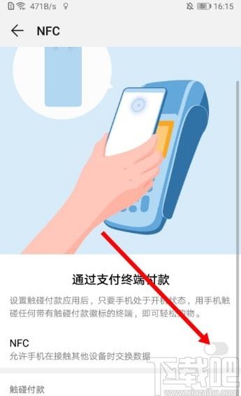 4.点击进入到NFC功能界面之后,在界面中可以看到这个功能的开关,然后点击它的开关将功能打开即可。
