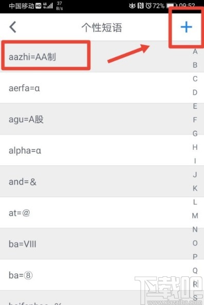 5.在编辑个性短语的界面右上角可以看到一个添加按钮,我们点击这个添加按钮就可以编辑添加想要添加的各项短语了。