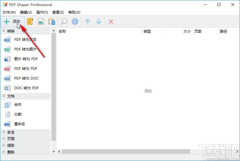 1.首先我们打开软件之后,在界面的左上方找到添加这个功能图标,点击之后准备添加想要合并的PDF文件。