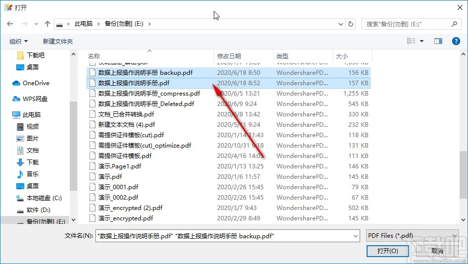 2.点击添加图标之后,在出现的选择图片文件的界面中,我们找到想要合并的PDF文件之后,选中它们,然后点击打开按钮。