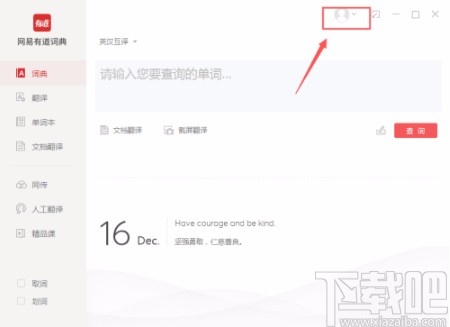 2.进入到软件主界面后,我们在界面上方找到头像处,头像旁边有一个小箭头,点击这个小箭头即可。