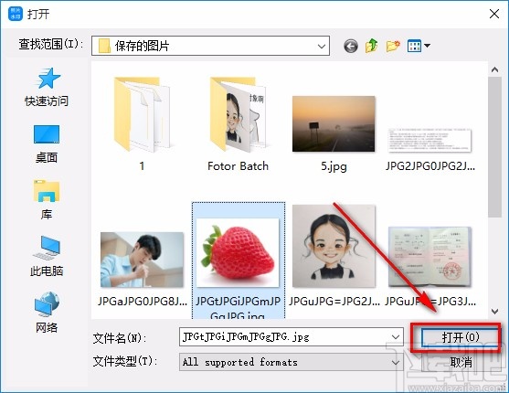2.接着在文件添加页面中,我们选中需要调整大小的照片文件,再点击页面右下角的“打开”按钮即可。