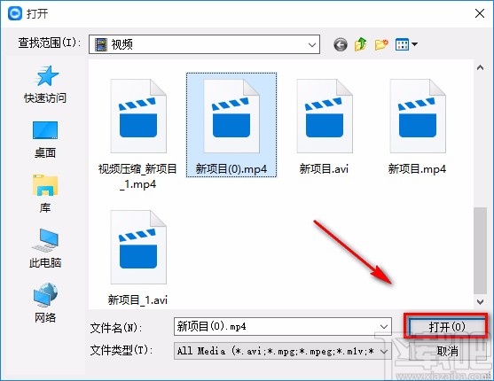 3.在视频文件添加页面中,我们找到需要转为GIF的视频并选中,再点击页面右下角的“打开”按钮即可。