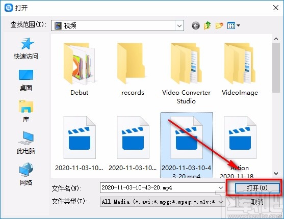 2.接着在文件添加页面中,我们选中需要添加模糊效果的视频后,再点击页面右下角的“打开”按钮即可。