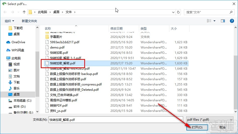 2.点击这个添加按钮之后,就会打开选择文件的界面,在这个界面中我们选择好想要旋转的PDF文件之后,点击右下角的打开按钮。
