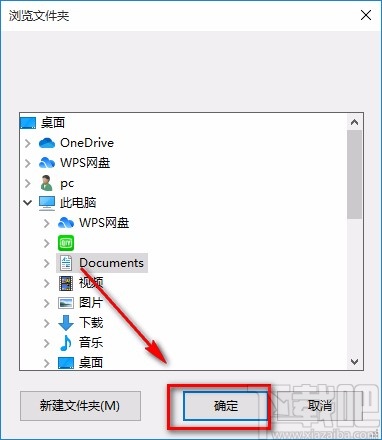 6.接下来界面上会弹出一个浏览文件夹窗口,我们在窗口中选择好文件的保存位置后,再点击窗口底部的“确定”按钮就可以了。