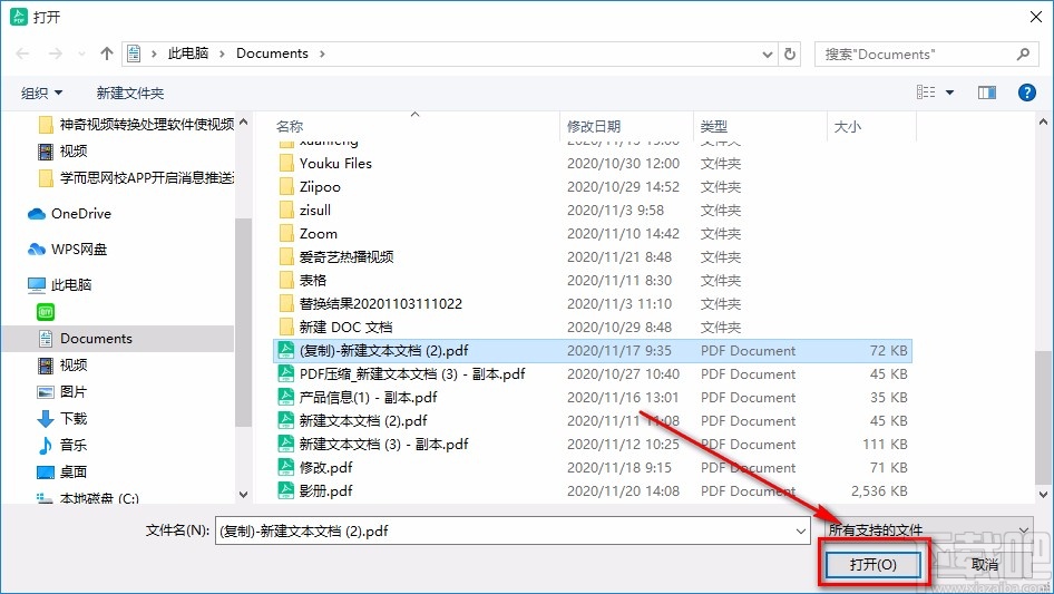 2.接着在文件添加页面中,我们找到需要转换为图片的PDF文件并选中,再点击页面右下角的“打开”按钮即可。