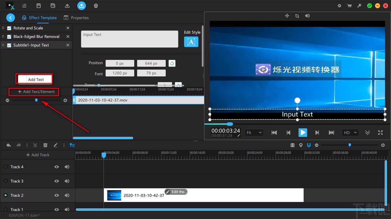 6.之后我们在界面左侧点击“Add Text/Element”选项,其上方会出现一个“Add Text”按钮,点击该按钮即可。