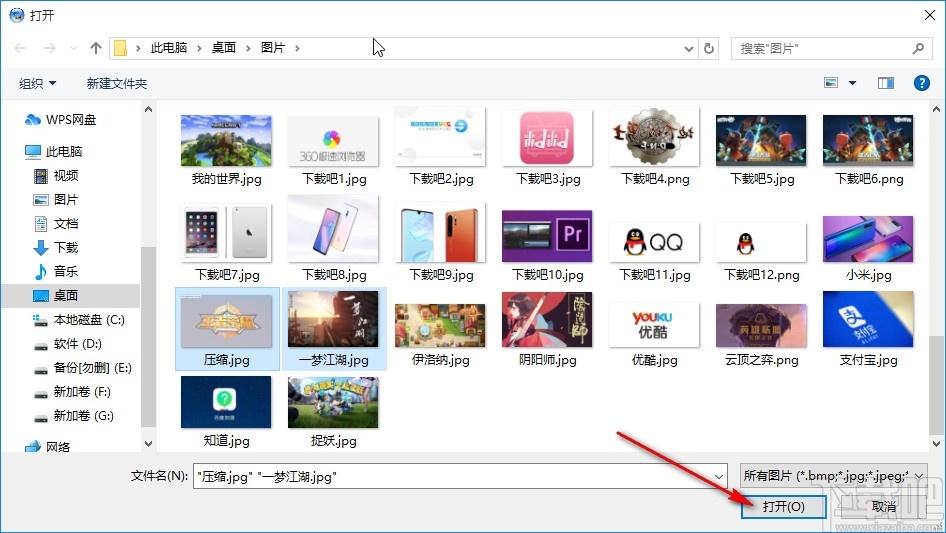 2.进入到选择图片界面之后,我们选中想要操作的图片,选中之后点击右下角的打开按钮可以将它们加载到软件中。