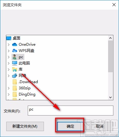 6.接下来界面上就会弹出浏览文件夹窗口,我们在窗口中设置好文件的保存位置后,再点击窗口底部的“确定”按钮即可。