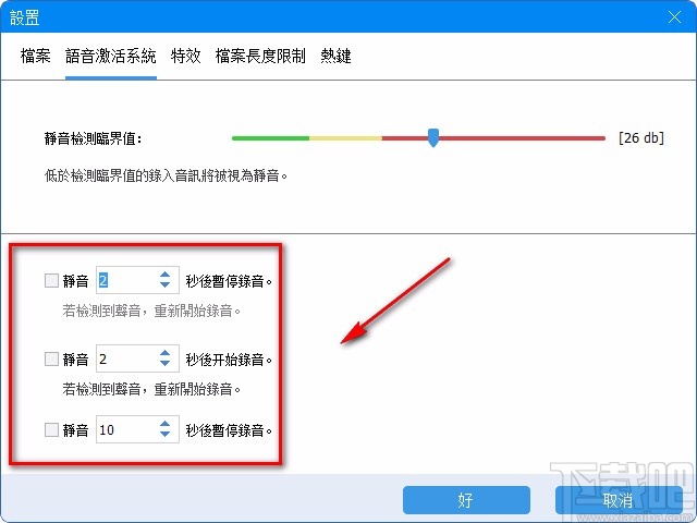 4.然后我们在窗口下方可以找到三个选项,我们根据自己的需要进行勾选,并在文本框中输入对应的时间数值;再点击窗口右下角的“好”按钮即可。