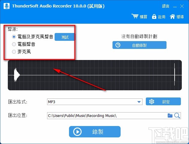1.首先打开软件,我们在界面左上方找到“声源”选项,该选项下方有三种声音来源,我们根据自己的需要进行选择即可。