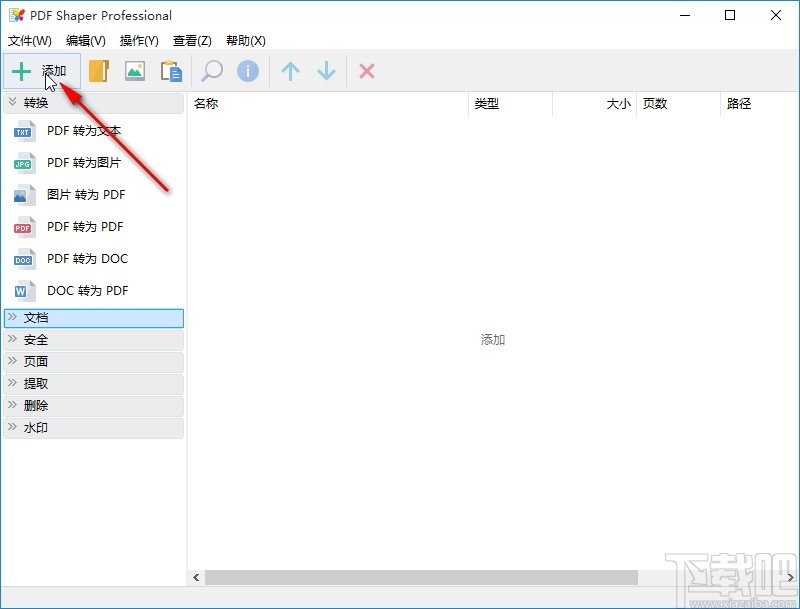 1.首先第一步我们打开软件之后,在界面的左上角找到添加这个功能按钮,点击之后准备添加想要处理的PDF文件。