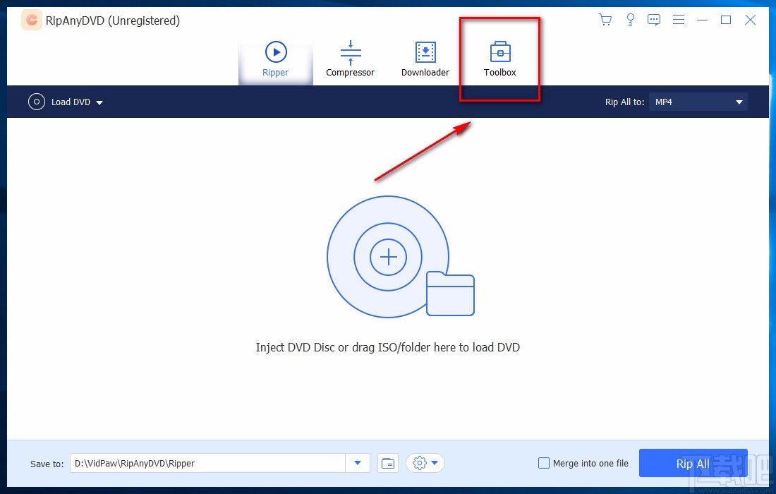 1.首先打开软件,我们在界面上方找到“Toolbox”选项,点击该选项就可以进入到Toolbox页面。