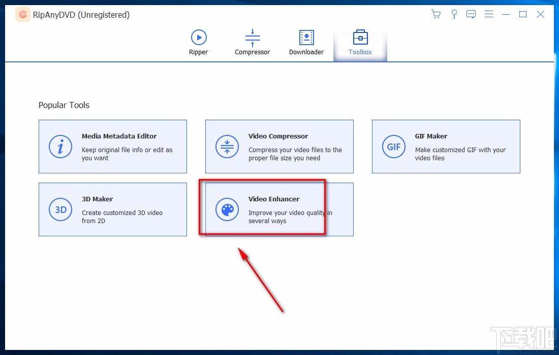 2.接着在Toolbox页面中,我们在页面上找到“Video Enhancer”选项,该选项表示视频优化的意思,点击该选项再进行下一步操作。