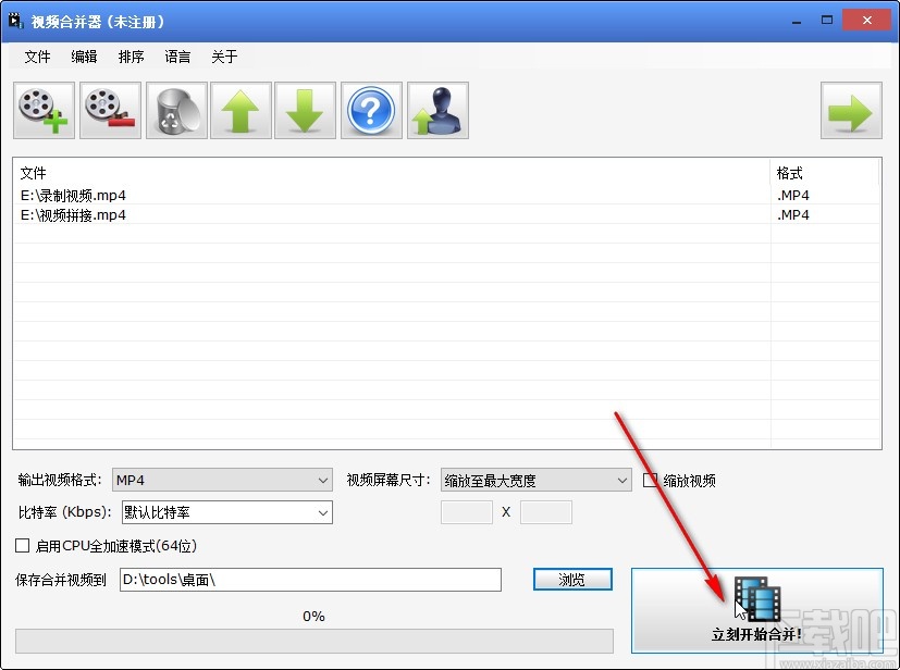 8.最后设置好以上参数之后,点击界面右下角的“立即开始合并”这个功能按钮就可以开始合并视频的操作了。