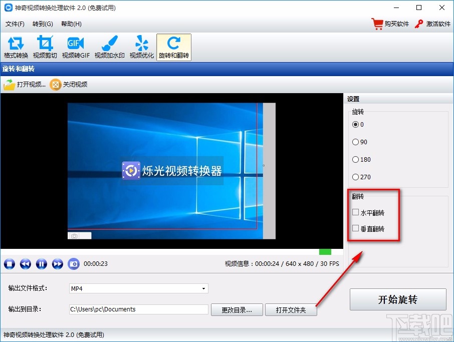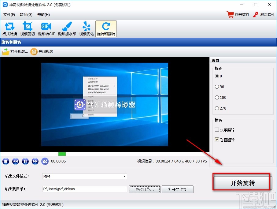 7.完成以上所有步骤后,我们在界面右下方找到“开始旋转”按钮,点击该按钮就可以开始翻转视频了。