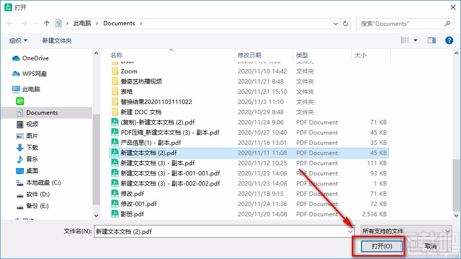 2.接着在文件添加页面中,我们选中需要提取页面的PDF文件后,再点击页面右下角的“打开”按钮即可。