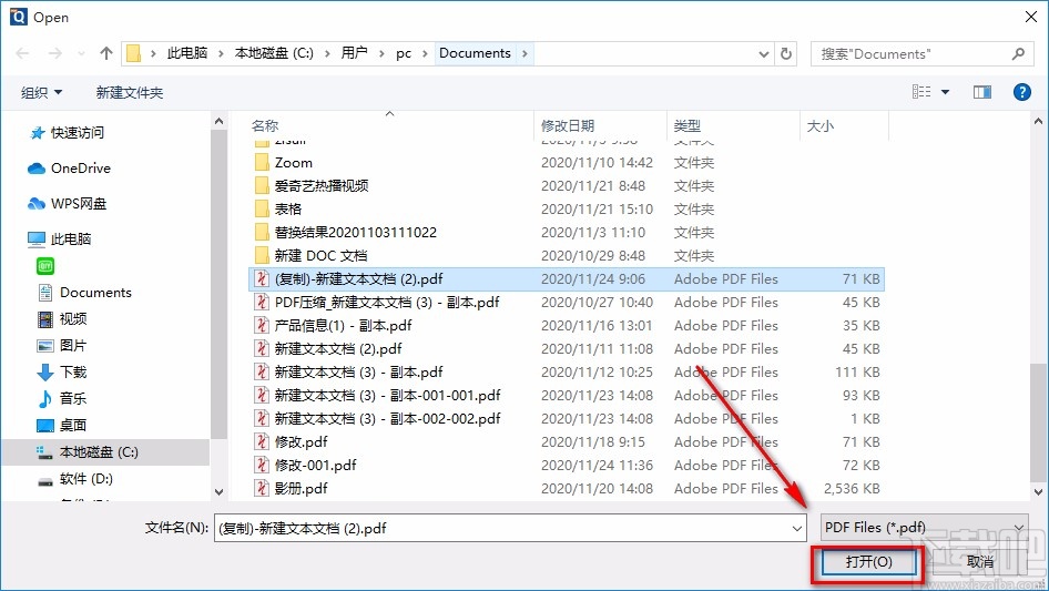 2.接着在文件添加页面中,我们选中需要进行缩放操作的PDF文件,再点击页面右下角的“打开”按钮即可。