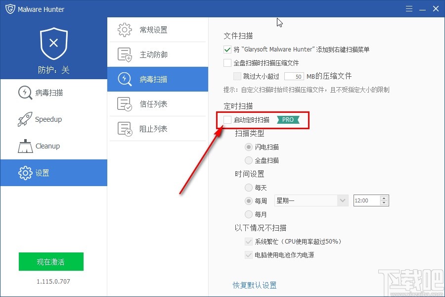 Glarysoft Malware Hunter Pro这款软件是一款功能丰富的病毒查杀工具,在使用这款软件的时候我们可以扫描查杀电脑中的病毒文件,并且还可以设置定时扫描功能,这样在一定的时间点软件就会自动开始扫描,这样就算是我们不在电脑旁边也可以进行病毒的扫描查杀,非常的智能实用,鉴于还有很多用户不知道在Glarysoft Malware Hunter Pro这款软件中怎么设置定时扫描,小编就来跟大家分享一下具体的操作方法吧,感兴趣的朋友不妨一起来看看小编分享的这篇教程,希望能够帮到大家。