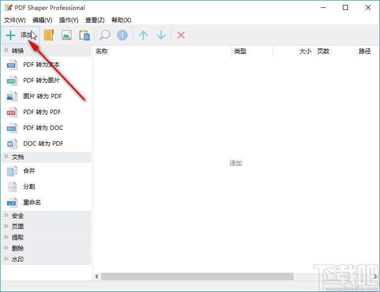 1.首先第一步我们打开软件之后,在界面的左上角找到添加这个功能按钮,点击这个按钮之后准备添加想要处理的PDF文件。