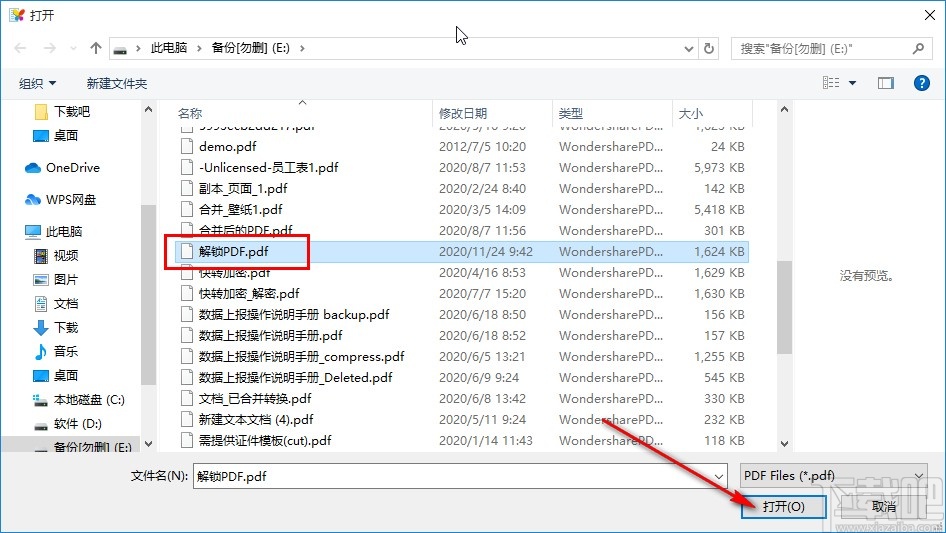 2.点击这个选择添加PDF文件的按钮之后,下一步在出现的选择文件界面中就可以找到想要处理的PDF文件了,选中之后点击右下角的打开按钮。